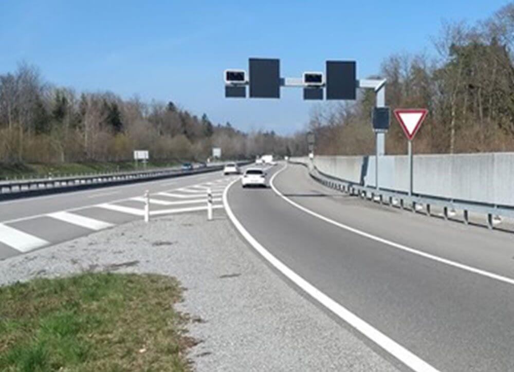 Im Raum Thun-Bern muss mittels Verkehrsmanagementmassnahmen der Verkehr beeinflusst werden, um die Verkehrsbehinderungen zu vermindern. Dazu wurde bereits eine GHGW-Anlage in Betrieb genommen. Im Zusammenhang mit dem Umbau des Anschlusses Rubigen wurde auf der Einfahrtsrampe Richtung Bern eine Rampendosierung errichtet. Mit dieser Massnahme kann der Verkehr in einem Stauraum zurückgehalten werden. An diesem Standort dient die Rampendosierung jedoch primär zur Pulkzerstückelung. Rudolf Keller & Partner bearbeitete dabei das Signalisationsprojekt für die Realisierung und begleitete die Parametrierung der Dosierung nach dem McMaster-Algorithmus.